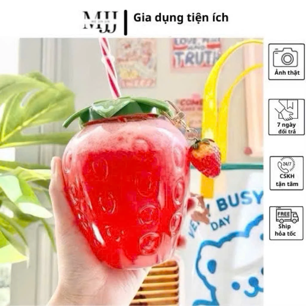 🔥 Bình đựng nước hình quả dâu tây dung tích 500ml, full phụ kiện móc treo và ống hút. đang giảm giá!