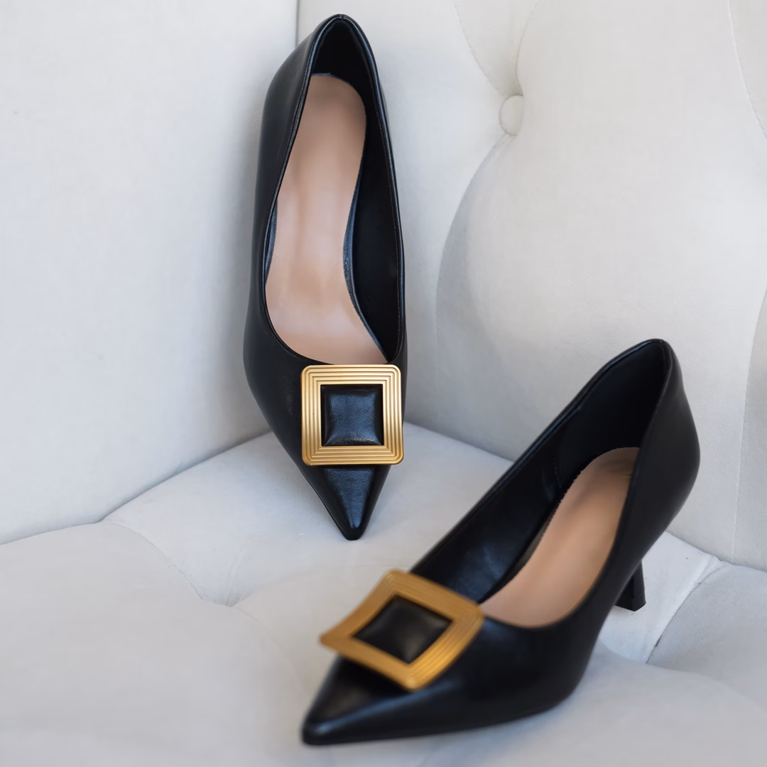 Khi chọn giày cao gót, bạn cần xem xét đến màu sắc, kiểu dáng và chất liệu của giày. Giày cao gót da mũi đính khuyên viền vàng đồng là một lựa chọn phổ biến và thời trang, nhưng bạn cần cân nhắc kỹ lưỡng để đảm bảo nó phù hợp với phong cách của mình.