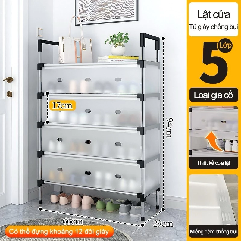 🔥 Kệ Inox 5 Tầng Có Vách Ngăn Chắn Bụi và có nắp đậy, Tủ Giày Thế Hệ Mới đang giảm giá!