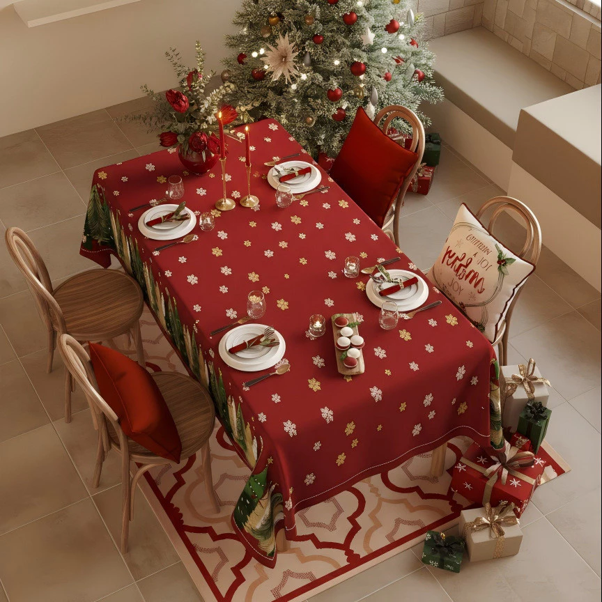 Trong dịp Giáng Sinh, một chiếc khăn trải bàn với họa tiết như bông tuyết, cây thông, hay những màu sắc festive có thể giúp tạo nên một không gian lễ hội và vui vẻ.