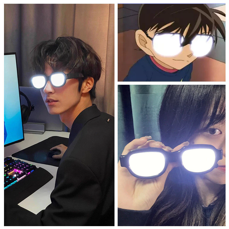 Thời Trang Conan Dạ Quang Kính Trang Trí Đèn Neon Trang Trí Kính Mát LED Cho Câu Lạc Bộ Đêm DJ Khiêu Vũ Nhạc Rave Trang Phục Đêm