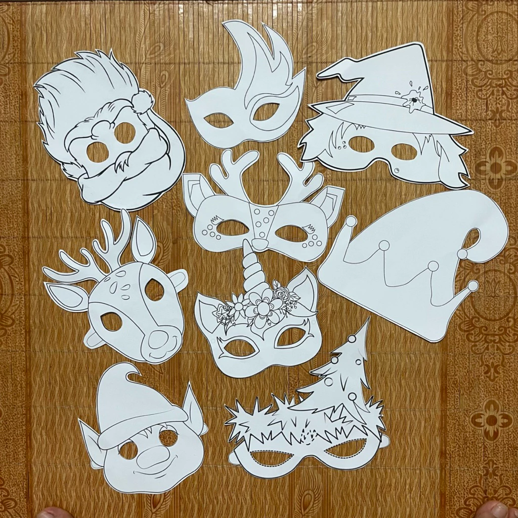 Giới Thiệu Sản Phẩm: Set 10 Mặt Nạ Tô Màu Chủ Đề Noel – Halloween Cho Bé
