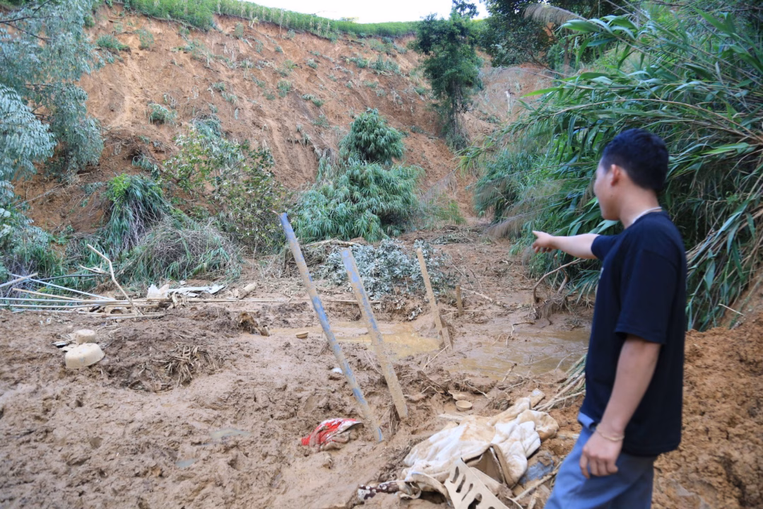 Căn nhà bị sập nằm ở ven trục đường lớn của xã Xa Dung, phía sau là một quả đồi cao. Mưa lớn đã khiến một phần đồi bị sạt xuống, đất đá đổ ập vào nhà, vùi lấp cả gian phòng ngủ. Người dân địa phương đã tìm thấy 3 đứa cháu tại chỗ chiếc chăn cũ đang nhô lên.