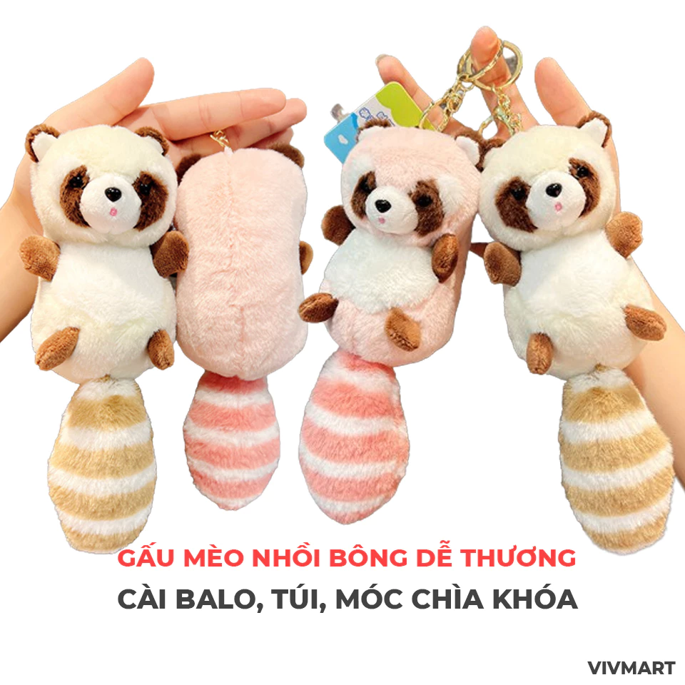 Móc khóa gấu mèo bông được làm từ chất liệu mềm mại và bền, giúp bạn có thể sử dụng trong thời gian dài. Sản phẩm này cũng có thể được gắn vào balo, túi hoặc móc chìa khóa.