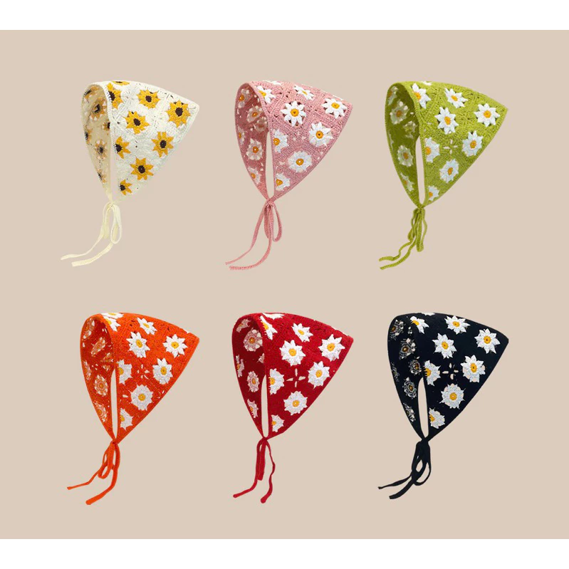 🔥 [Có sẵn] Mũ len nữ Cài Đầu Bandana tam móc len hoạ tiết hoa phụ kiện đi biển mùa hè du lịch chụp ảnh đang giảm giá!