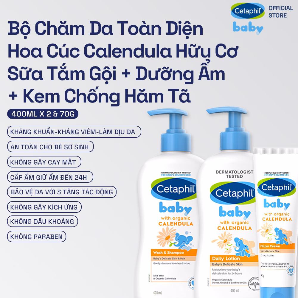 🔥 Set mini Sữa tắm gội + Sữa dưỡng ẩm + Kem chống hăm tã Cetaphil WITH ORGANIC CALENDULA An Toàn Cho Bé Sơ Sinh đang giảm giá!